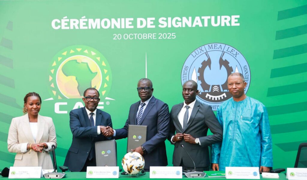 La Confédération Africaine de Football (CAF) et l’Université Cheikh Anta Diop de Dakar (UCAD) ont conclu un partenariat stratégique visant à élever les standards du football continental. L’accord a été signé le 20 octobre 2025 au siège de la CAF au Caire, par le Recteur de l’UCAD, Pr Alioune Badara Kandji, et le Secrétaire général de la CAF, Véron Mosengo-Omba, en présence de personnalités académiques et sportives, dont le Directeur de l’INSEPS.