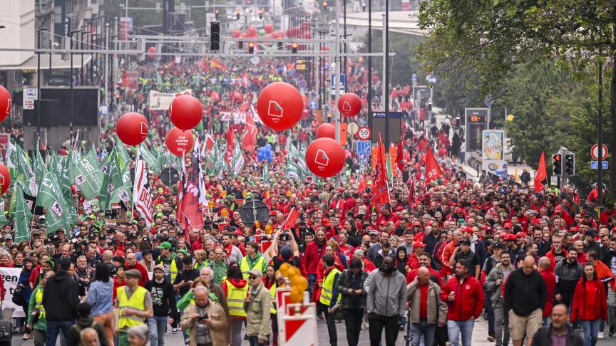 À 11h00, la FGTB et la CSC devaient être rejointes par la CGSLB pour un rassemblement en front commun devant le siège de la Banque nationale de Belgique (BNB), marquant une nouvelle étape dans la contestation.